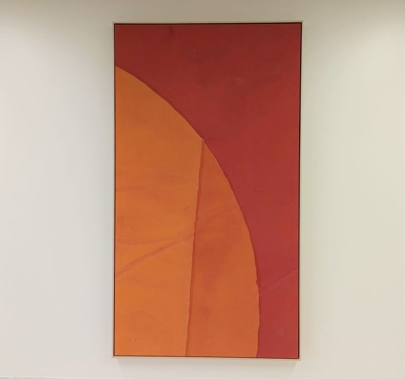 A master of color theory and practice, Avedisian’s paintings are perfect examples of how strong a visual and emotional impact can be made with simple line and color combinations constructed with a skilled eye. In Untitled, the artist gives a major impact with a subtle color. This work is part of a larger phase of the artist’s career in the 1960s which is sometimes referred to as his “beach ball” canvases. Tones from the same family of pinks create a serene atmosphere. The upper space of the canvas is a peachy pink made of a traditional flat field of one color. The orange “ball” is created in tones of peachy yellows. This division of the canvas imparts a spatial and atmospheric trompe l’oeil as the peachy circular shape jumps out to form the foreground and the pink plane recedes forming a background. This creation of a spatial complexity, with an elusive quality of atmosphere, is a result of Avedisian’s strong understanding of color balance and relationship.
