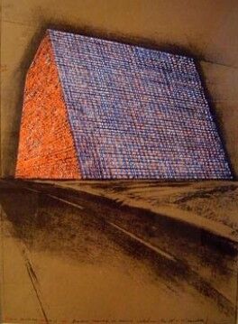 Christo and his late wife Jeanne-Claude (French, b. Morocco 1935−2009) met in 1958 in Paris. Their first outdoor temporary work and first project together was the Stacked Oil Barrels and Dockside Packages, Cologne Harbor in 1961. Jeanne-Claude helped Christo on most of his works since that time, but only started receiving public credit in the 1990s. Visually impressive, their works tend to stir up controversy and misunderstandings. They are known as wrapping artists, although wrapping is certainly not the singular common denominator in their collective works, as their use of petroleum barrels indicates. While fabric, cloth, and textile are often used in their pieces to create a fragile and sensual feel, which translates to the temporary character of their art, it would be more accurate to describe Christo and Jeanne-Claude as environmental artists. Their works are placed in urban environments and places already being used by people. Christo’s comment on the matter is: “We believe that labels are important, but mostly for bottles of wine.” The missed details of their work, however, has led to misconceptions about their impact on the environment and the purpose of their pieces but Christo and Jeanne-Claude have always stated that the purpose of their art is to be enjoyed and bring a new creative perspective to familiar landscapes. This print records the concept for an unrealized Texas Mastaba, one of the earliest versions in a series inspired by ancient Egyptian mastabas, or flat-roofed rectangular tombs, made out of stacked barrels. The artists had intended for this work to occupy a site along the Gulf Freeway between Houston and Galveston, near the University of Houston campus. Another work from the series, The London Mastaba, finally came to fruition in London’s Hyde Park in 2018.